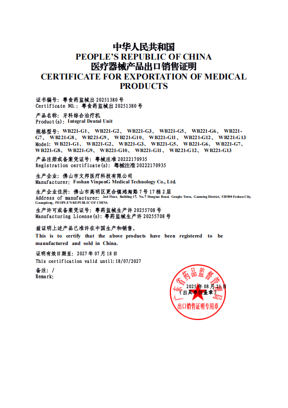 Foshan VinponG Medical Technology Co., Ltd. Is an original manufacturer of dental units with more than 20years of production experience.It takes up quality first and humanized design as its business philosophy,and has introduced a large number of advanced digital and automated equipment processing(German KUKA manipulator, Han's laser machine, automatic processing center, automatic load-bearing feeder, 360-degree manipulator automatic electric welding machine, etc.).VinponG Medical independently develops and produces the most stable quality products and the most suitable price.Professional technology ,dedicated production and dedicated service will always be VinponG sincere and permanent commitment to you.